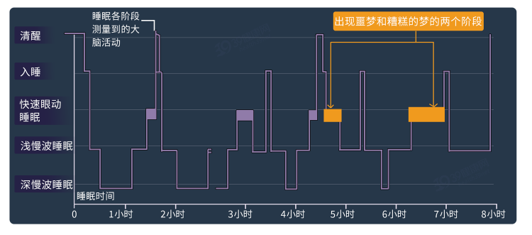 白天時,來自外界的刺激掩蓋了疾病信號,而晚上人體接受資訊減少,這些微弱信號就會不斷送入腦中,導致頻繁噩夢。